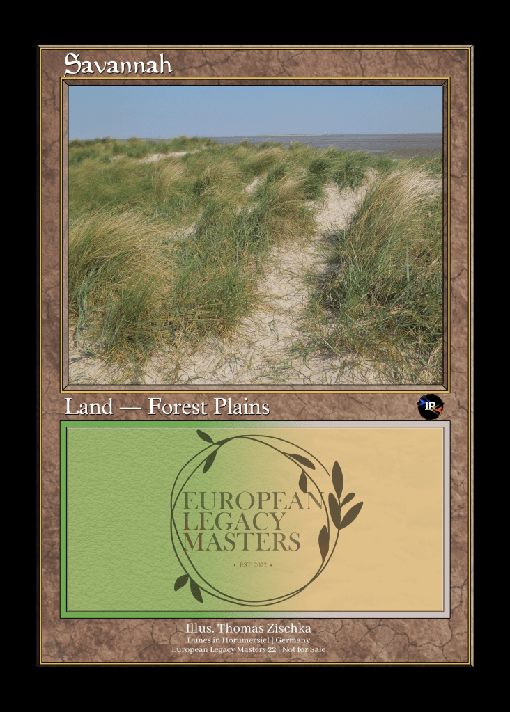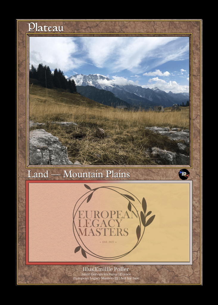 These playtest cards were created specifically for ELM, and feature photos are taken all across Europe, by members of the European Legacy community. Additionally, Top8 players will receive an entire set (10p) of these!